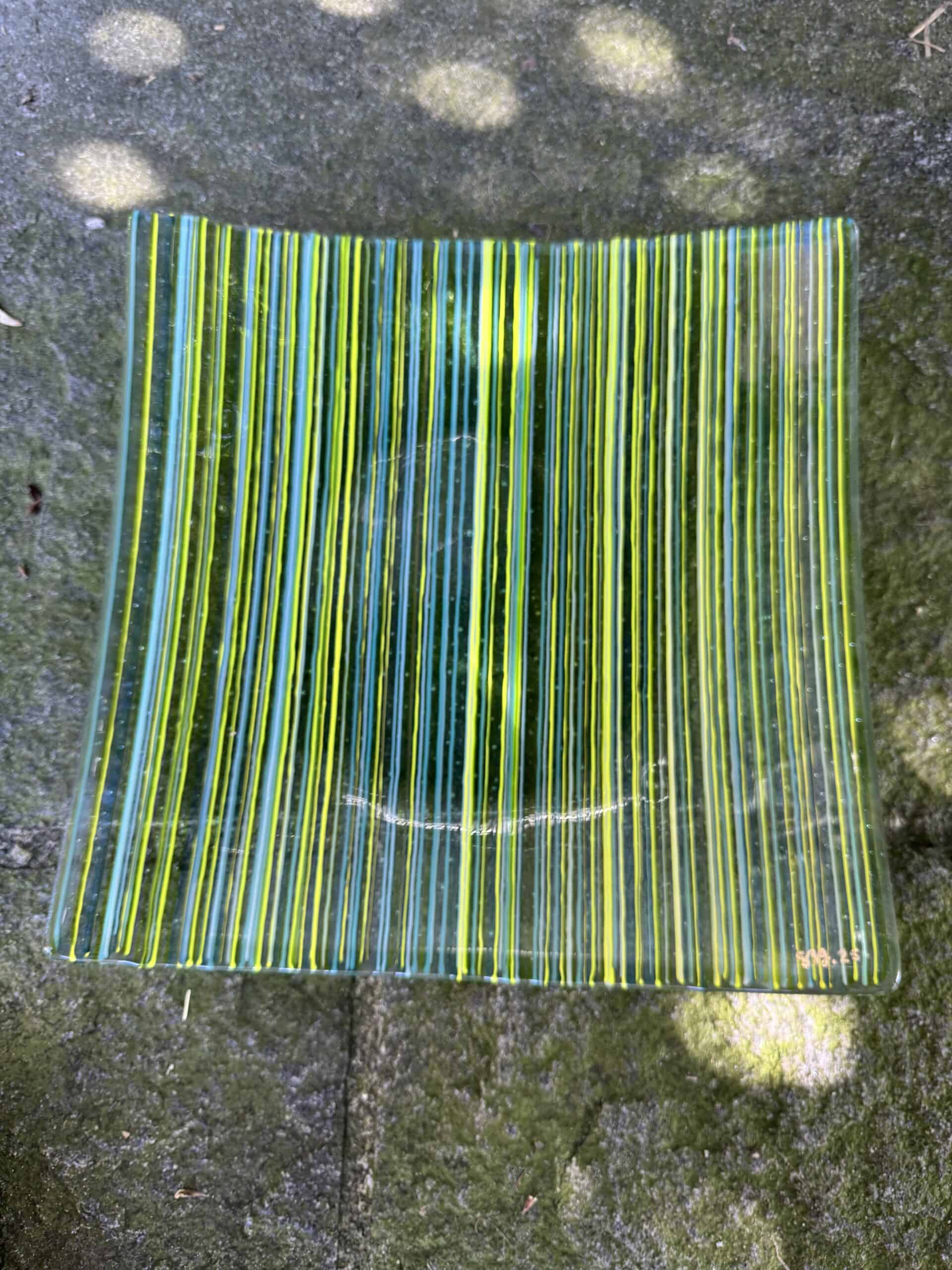 Aus millimeterdünnen Glasstäbchen und transparentem Glas erschaffst du deine viereckige Glasschale.
